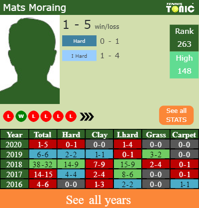 Moraing has a 1-5 win-loss record in 2020, 1-4 on indoor hard courts (See FULL STATS).
