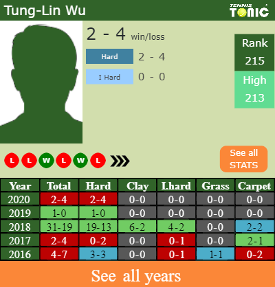 Wu has a 2-4 win-loss record in 2020, 0-0 on indoor hard courts (See FULL STATS).