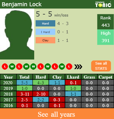 Benjamin has a 5-5 win-loss record in 2020, 0-1 on indoor hard courts (See FULL STATS).