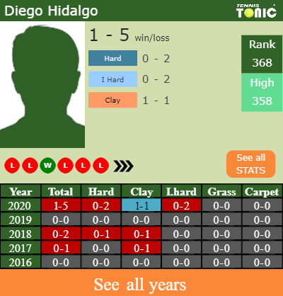 Ranked no. 368, Hidalgo will start his run in the Columbus Challenger after he played his last match in the Morelos Challenger where he lost 7-6(5) 6-2 to Clezar in the 1st round the 17th of February.