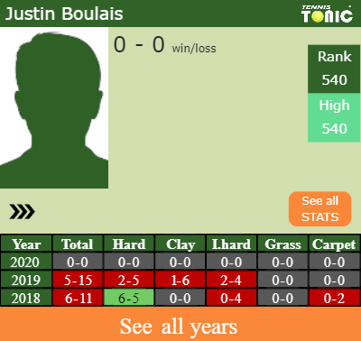 In terms of his career, Boulais has an overall 11-26 record. He has negative 2-8 record on indoor hard courts.