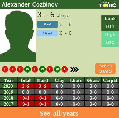 Cozbinov has a 3-6 win-loss record in 2020, 0-0 on indoor hard courts (See FULL STATS).