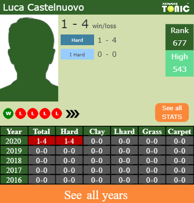 Talking about his overall career, Luca has an overall 1-4 record. He has flat 0-0 record on indoor hard courts.