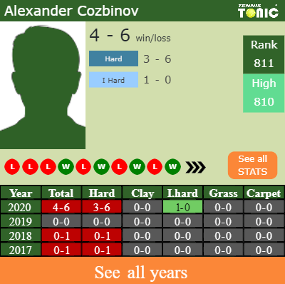 Cozbinov has a fantastic record in the last 4 years having won 100% of his matches (4-0). 1-0 on indoor hard courts in 2020. Talking about his performance on the same surface of this tournament, Cozbinov has a 4-8 win-loss record in the last 4 years on indoor hard courts.