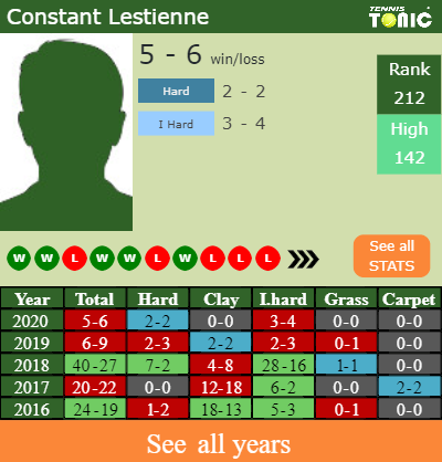 Talking about his overall career, Lestienne has an overall 129-108 record. He has positive 67-42 record on indoor hard courts.
