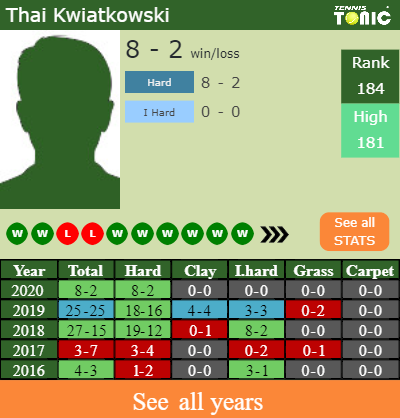 Kwiatkowski’s best result of the current season was getting to the final in the Newport Beach Challenger.
