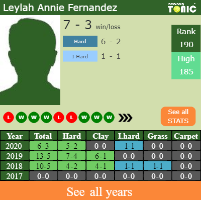 - Leylah Annie FernandezAnnie Fernandez – Nao HibinoHibino (2-1) – See H2H details