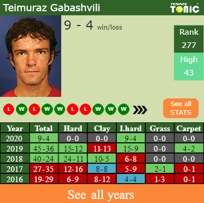Teimuraz has a 9-4 win-loss record in 2020, 9-4 on indoor hard courts (See FULL STATS).
