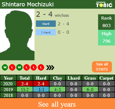 Shintaro has a 2-4 win-loss record in 2020, 2-4 on hard (See FULL STATS).