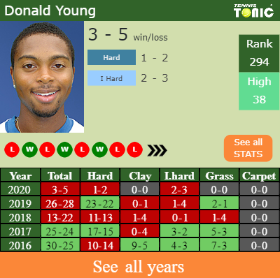 Young has a 3-5 win-loss record in 2020, 1-2 on hard (See FULL STATS).