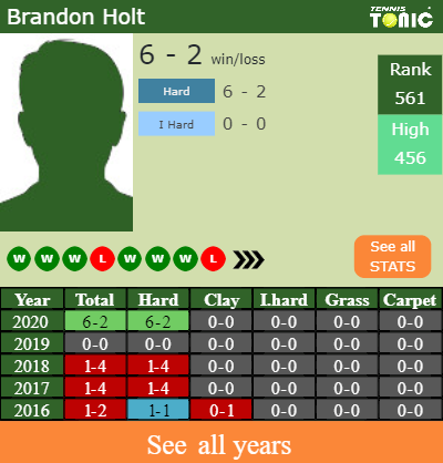 In terms of his career, Holt has an overall 9-12 record. He has negative 9-11 record on hard.