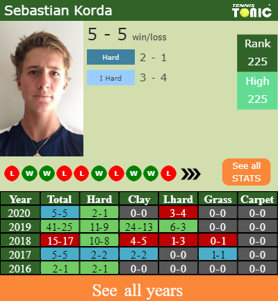 Sebastian has a 5-5 win-loss record in 2020, 2-1 on hard (See FULL STATS).