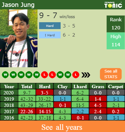 Jung has a 9-7 win-loss record in 2020, 3-5 on hard (See FULL STATS).