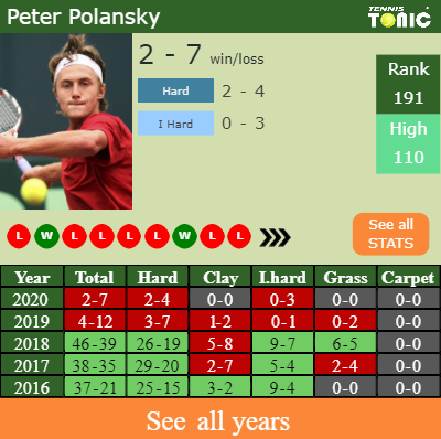 Polansky has a 2-7 win-loss record in 2020, 2-4 on hard (See FULL STATS).