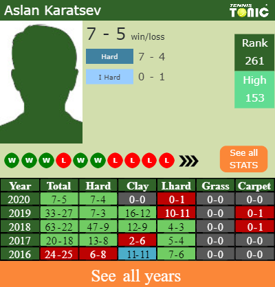 In terms of his career, Aslan has an overall 289-203 record. He has positive 66-56 record on indoor hard courts.