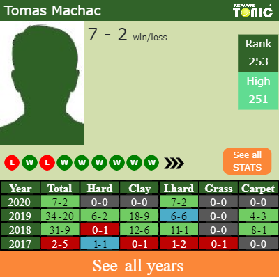 Tomas has a 7-2 win-loss record in 2020, 7-2 on indoor hard courts (See FULL STATS).