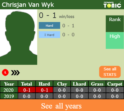 Van Wyk has a 0-1 win-loss record in 2020, 0-1 on hard (See FULL STATS).