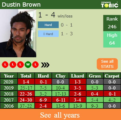 - Dustin BrownBrown – Corentin DenollyDenolly (0-0) – See H2H details