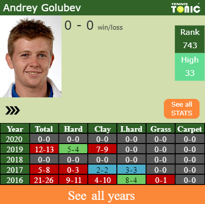In terms of his career, Golubev has an overall 453-390 record. He has positive 131-87 record on indoor hard courts.