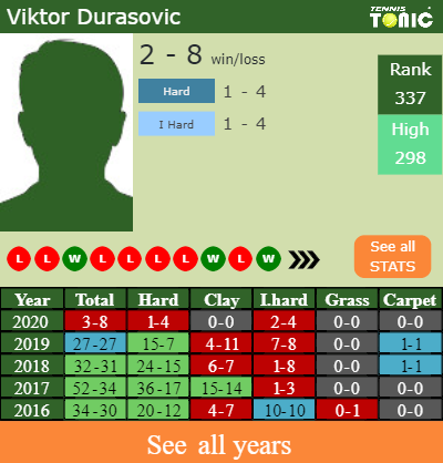 Viktor has a 3-8 win-loss record in 2020, 2-4 on indoor hard courts (See FULL STATS).