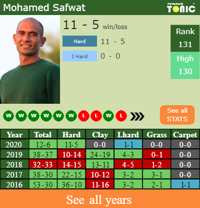 Safwat didn’t compete in the The Nur-Sultan Challenger in 2019.