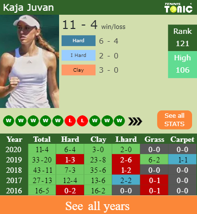 Juvan has a fantastic win-loss record in the last 5 years having won 80% of her matches (254-64). 3-0 on clay in 2020. Talking about her performance on the same surface of this tournament, Juvan has a 130-53 win-loss record in the last 5 years on clay.