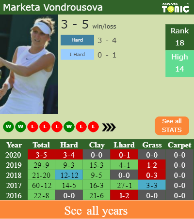 Marketa has a 3-5 win-loss record in 2020, 0-0 on clay (See FULL STATS).