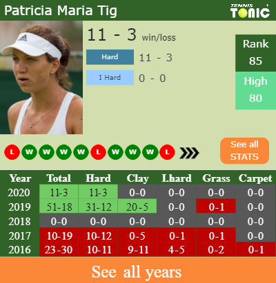 In terms of her career, Patricia has an overall 125-98 record. She has positive 36-31 record on clay.
