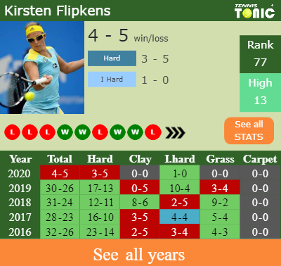 Flipkens has a 4-5 win-loss record in 2020, 0-0 on clay (See FULL STATS).