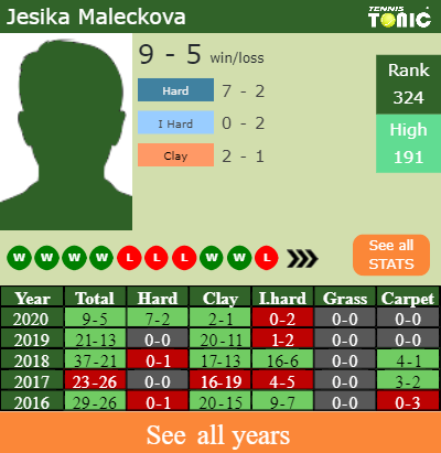 Maleckova has a 9-5 win-loss record in 2020, 2-1 on clay (See FULL STATS).