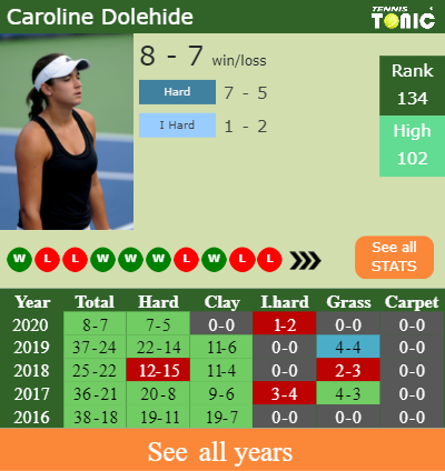 Talking about her overall career, Caroline has an overall 172-106 record. She has positive 97-59 record on hard.
