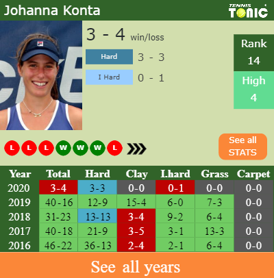 Johanna has a 3-4 win-loss record in 2020, 3-3 on hard (See FULL STATS).