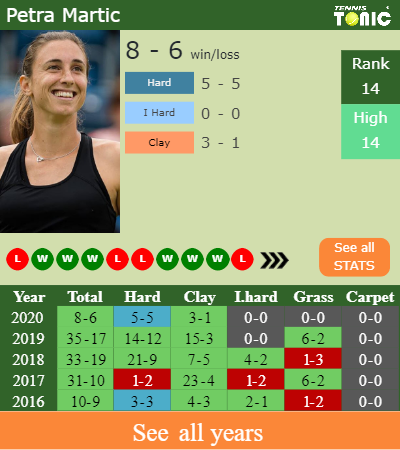 The Croatian has a 8-6 win-loss record in 2020, 3-1 on clay (See FULL STATS).