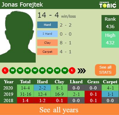 The pick for Tennis Tonic is Jonas Forejtek who should win in 3 sets.