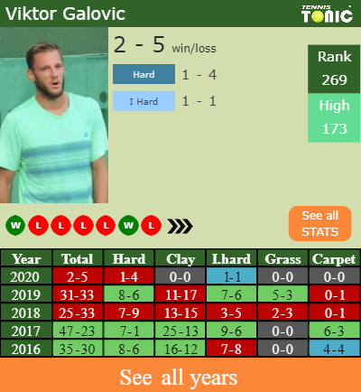 Viktor has a 2-5 win-loss record in 2020, 0-0 on clay (See FULL STATS).