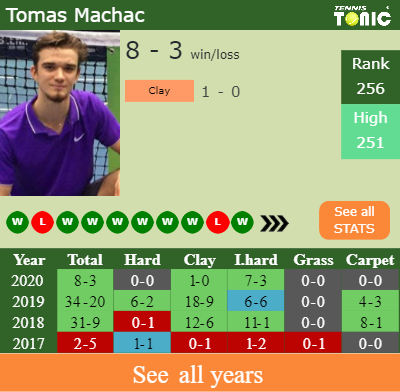 Tomas has a 8-3 win-loss record in 2020, 1-0 on clay (See FULL STATS).
