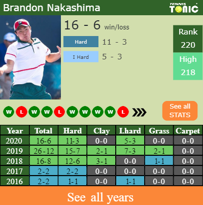 - Brandon NakashimaNakashima – Marton FucsovicsFucsovics (0-0) – See H2H details