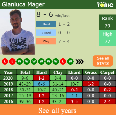As per the initial odds, Gianluca Mager is the pick to win this match.
