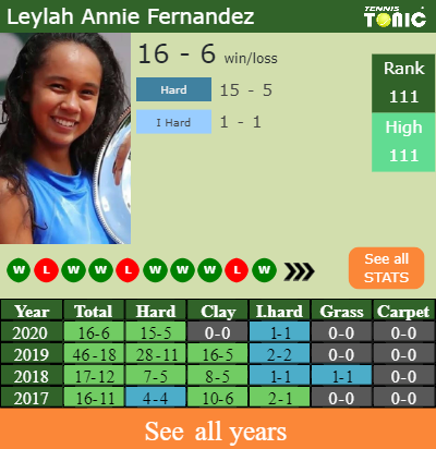 Ranked no. 111 (career high), Leylah got to the qualifications after beating Anna Blinkova 6-1 6-4.