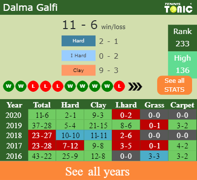 Galfi has a 11-6 win-loss record in 2020, 9-3 on clay (See FULL STATS).