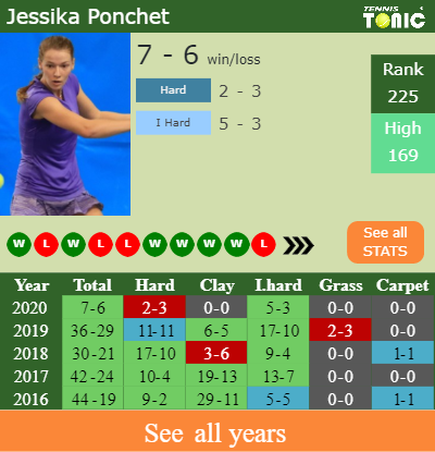 Talking about her overall career, Ponchet has an overall 159-99 record. She has positive 57-35 record on clay.