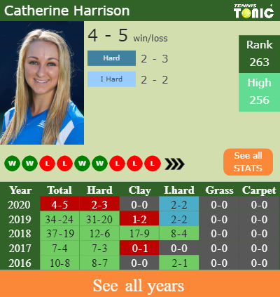 Catherine has a 4-5 win-loss record in 2020, 0-0 on clay (See FULL STATS).