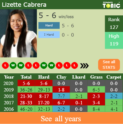 In terms of her career, Cabrera has an overall 157-141 record. She has positive 109-90 record on hard.