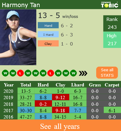 Harmony has a 13-5 win-loss record in 2020, 1-0 on clay (See FULL STATS).