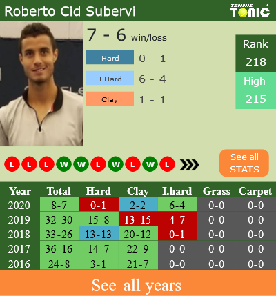 In terms of his career, Cid has an overall 175-119 record. He has positive 102-67 record on clay.