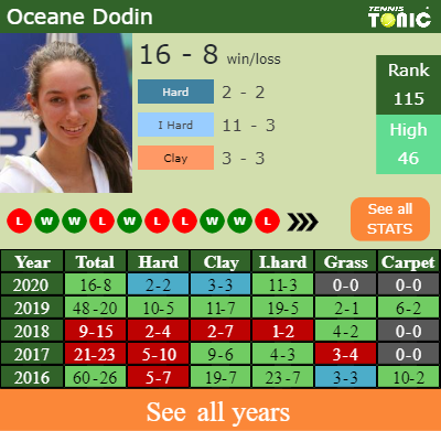 In terms of her career, Dodin has an overall 262-156 record. She has positive 58-38 record on hard.
