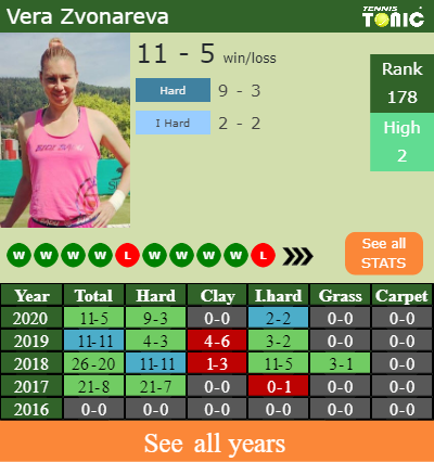 Vera has a 11-5 win-loss record in 2020, 9-3 on hard (See FULL STATS).