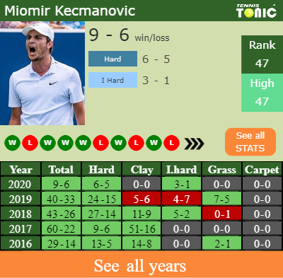 Talking about his overall career, Kecmanovic has an overall 191-110 record. He has positive 86-49 record on hard.