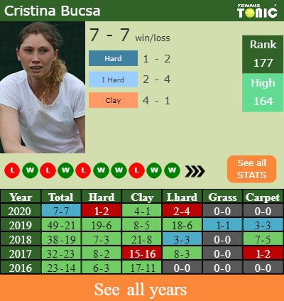 Bucsa has a 7-7 win-loss record in 2020, 4-1 on clay (See FULL STATS).