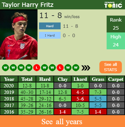This will be the 3rd time that Denis Shapovalov and Taylor Harry Fritz clash against each other. The head to head is 2-0 for Shapovalov (see full H2H stats), 1-0 on hard.
